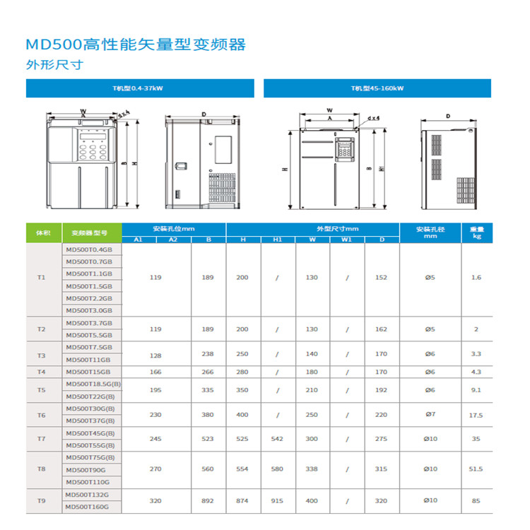 匯川變頻器MD500是匯川技術匯集了矢量變頻技術的高性能變頻器,憑借高性能的電流矢量技術,可輕松驅動感應電動機。MD500 采用高性能、高品質、高功率密度設計,在易用性、可維護性、環保性、安裝空間和設計標準等方面有顯著提升,可進一步優化用戶的使用體驗。