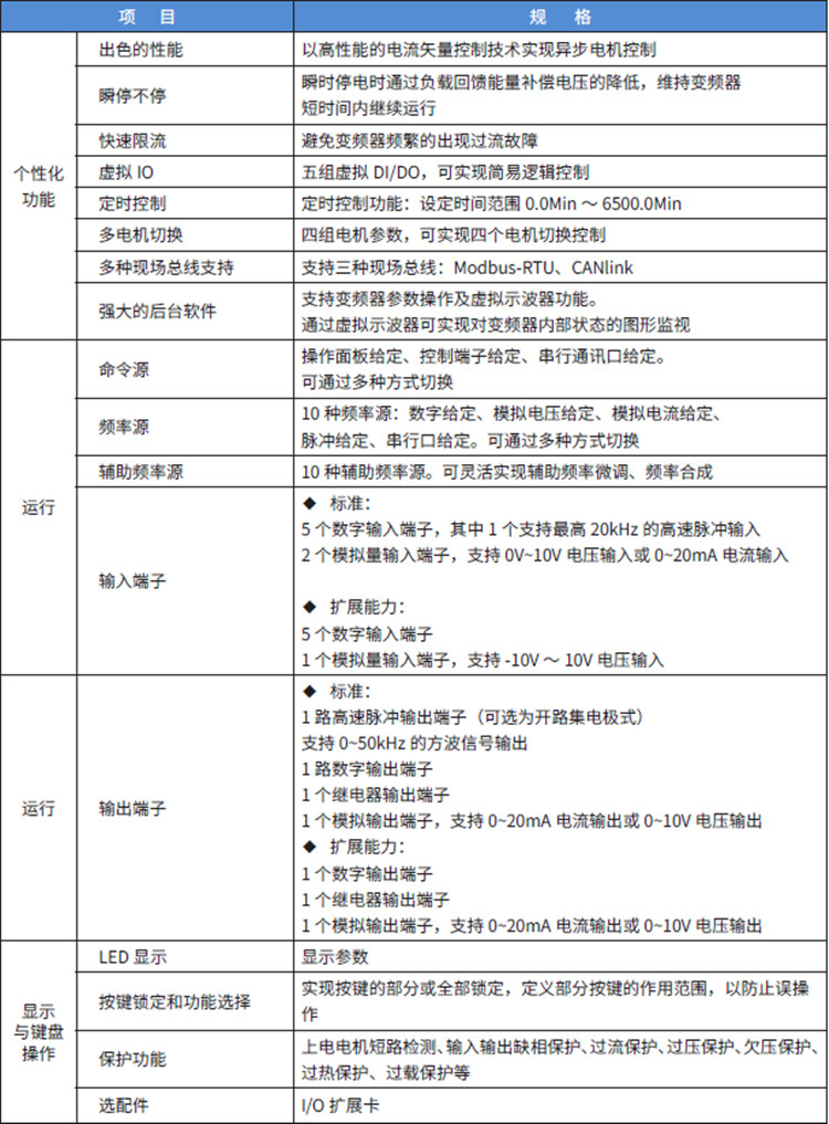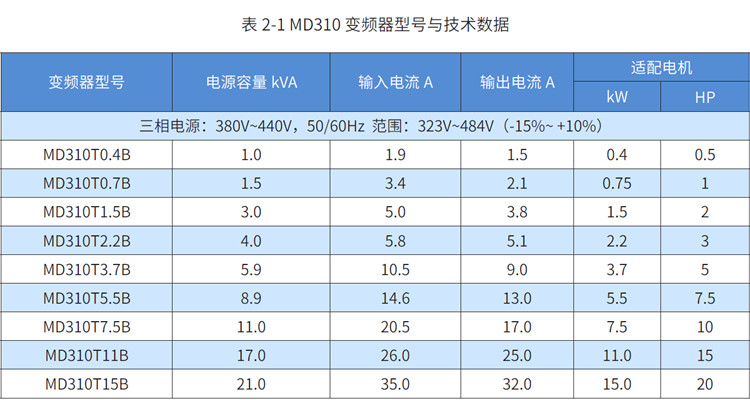 匯川變頻器MD310系列MD310 系列變頻器是一款通用緊縮型多功能變頻器,采用開環矢量和V/F 控制方式,以高性能的電流矢量控制技術可實現異步電機控制。MD310 標配RS485 通訊接口,支持Modbus RTU 通訊,可擴展I/O 擴展卡、CAN 通信擴展卡。內置PID 可方便實現閉環過程控制系統,最多可實現16 段速運行。